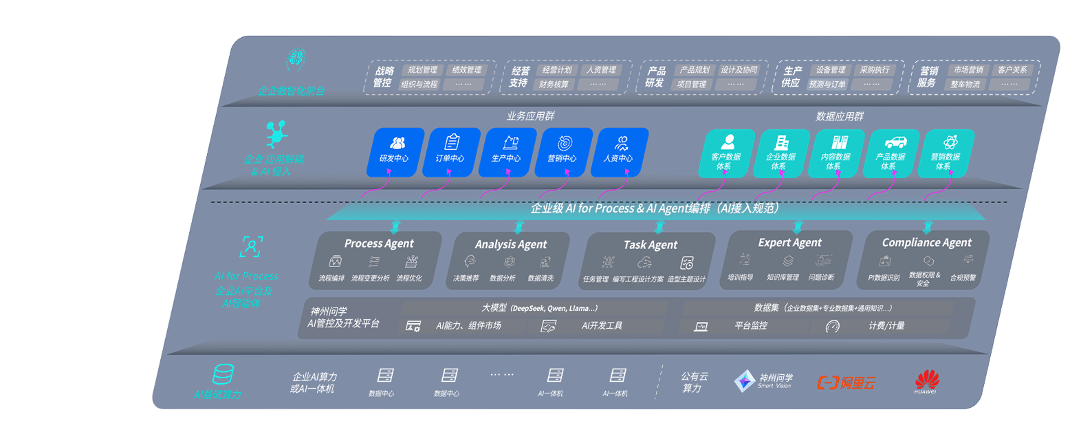 端到端的一站式AI工作空间深度融合了从企业战略规划到日常经营的全流程业务板块,,,定向解决车企内部领域多、、部门多、、、、链条长、、、场景碎片化等难题,,支持车企快速构建以AI为核心的生产力写作体系,,,实现任务执行与AI能力的无缝集成与交互